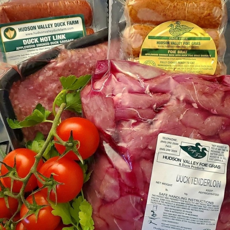 Over the years we have developed a special breed of duck we refer to as the Hudson Valley Duck. This breed is a hybrid of the heritage Mallard, and Muscovy breeds and is reminiscent of heritage ducks from France. In between the larger Moulard and smaller Pekin in size, our Hudson Valley Duck fits the perfect profile. The breast is very meaty, with a deep red color and steak-like texture. Try dry aging whole for uniquely tender meat and crispy skin that is unmatched.