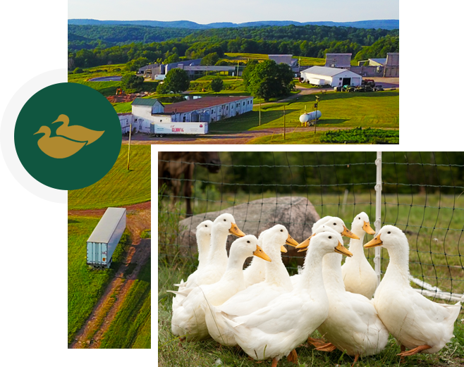 Moulard ducks are the foundation of culinary tradition in Gascony, France. Our Moulard Duck is a hybrid of the Pekin and Muscovy breeds. They are raised cage-free in open barns, on a vegetarian grain diet, with no added antibiotics or growth hormones. We emphasize a stress-free environment and plenty of space to allow natural flocking behavior. Our Moulard ducks produce the finest, meatiest and largest duck breast on the market, known as magret. The legs are perfect for confit. The foie gras speaks for itself. Our duck is proudly served by many of the top chefs and restaurants in the country.